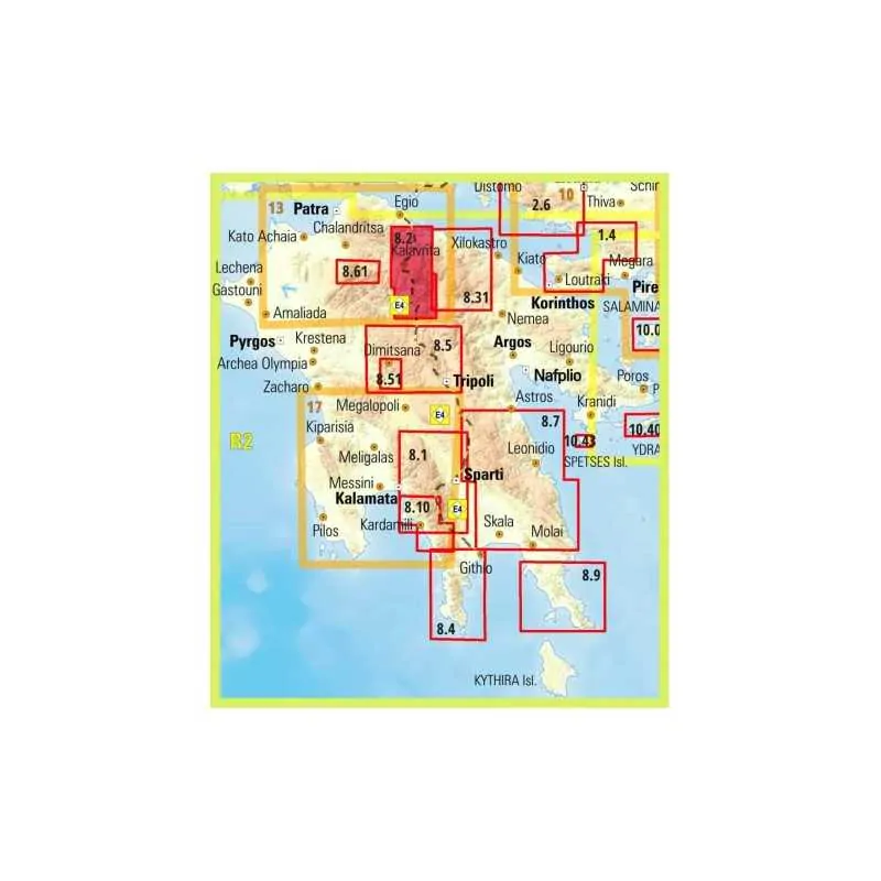 Πεζοπορικός χάρτης για το όρος Χελμός και το φαράγγι του Βουραϊκού σε κλίμακα 1:30 000. Ανανεωμένος πεζοπορικός χάρτης του Χελμού σε κλίμακα 1:30 000, του ψηλότερου βουνού στην Αχαΐα με υψόμετρο 2355μ. Ο χάρτης καλύπτει την περιοχή από τη λίμνη Τσιβλού και τα δάση της Ζαρούχλας μέχρι το φαράγγι του Βουραϊκού με το διάσημο οδοντωτό σιδηρόδρομο, και από τις πηγές του Αροάνιου στα νότια, την αρχαία Κλειτωρία και το Σπήλαιο των Λιμνών μέχρι τους αρχαίους Λουσούς. Από την εύφορη κοιλάδα του Κερυνίτη και την πανοραμική θέα του Κλωκού και φυσικά το όρος Χελμός (αρχαία Αροάνια όρη). Μια περιοχή με ένα τοπίο πλούσιο σε ομορφιά και ιστορία. Στο χάρτη αποτυπώνεται η διαδρομή του Ε4 και πολλές ακόμα πεζοπορικές διαδρομές.