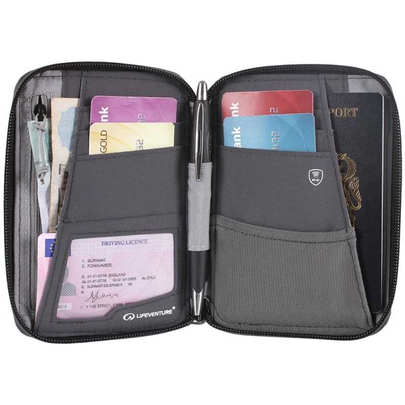 Το Lifeventure RFID Mini Travel Wallet μπλοκάρει τα σήματα RFID, αποθαρρύνοντας τους επίδοξους κλέφτες που προσπαθούν να σκανάρουν τα προσωπικά δεδομένα από τις πιστωτικές σας κάρτες (ανέπαφες ή μη).
