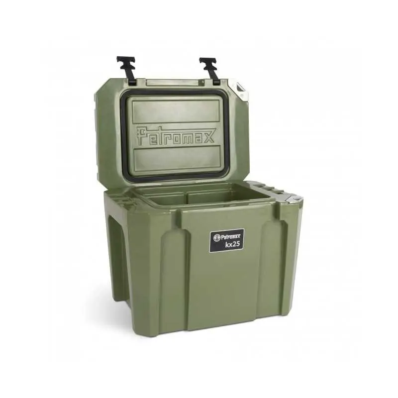 Η καλύτερη λύση για ψύξη των φαγητών και των ποτών στο camping από την Petromax. Παρέχει τέλεια τροφοδοσία σε εξωτερικούς χώρους. Για το μαγείρεμα σε εξωτερικούς χώρους είναι απαραίτητο ένα ψυγείο που κρατάει δροσερά τα υλικά σας. Το ψυγείο της Petromax Cool Box με διπλό τοίχωμα και μόνωση κενών εγγυάται αξιόπιστη υποστήριξη. Τα Petromax Cool Boxes της σειράς kx διατηρούν τον πάγο δροσερό για έως και 12 ημέρες. Το εξαιρετικά παθητικό σύστημα ψύξης δεν απαιτεί ούτε ηλεκτρικό ρεύμα ούτε άλλες πηγές ενέργειας και λειτουργεί αποκλειστικά με πάγο του εμπορίου, παγοκύστες ή ξηρό πάγο. Με χωρητικότητα 25 λίτρων το kx25 παρέχει επαρκή αποθηκευτικό χώρο. Μεγάλο πλεονέκτημα του ψυγείου είναι οι εσωτερικές διαστάσεις που είναι σχεδιασμένες ώστε να μπορούν να μεταφέρονται σε όρθια θέση είτε 24 x 0,33ml κουτάκια αλουμινίου (μπύρες, αναψυκτικά κλπ) είτε 12 x 1lt μπουκάλια νερού νερού.