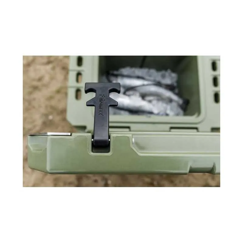 Οι οδηγοί ζώνης που παρέχονται στο καπάκι του ψυγείου επιτρέπουν εύκολη μεταφορά σε σκάφος ή σε χώρο φόρτωσης. Οι εργονομικές λαβές σε κάθε πλευρά χρησιμεύουν για βέλτιστο χειρισμό και εγγυώνται άνετη μεταφορά ακόμη και όταν το ψυγείο είναι πλήρως γεμάτο. Ταυτόχρονα, οι λαβές μπορούν να χρησιμοποιηθούν ως σημεία πρόσδεσης - με αυτόν τον τρόπο το cool box μπορεί να γεμίσει κατά τη μεταφορά. Δύο ανθεκτικά λαστιχένια κλείστρα επιτρέπουν το άνοιγμα και το κλείσιμο του ψυγείου και με βρεγμένα δάχτυλα ή με το ένα χέρι. Επίσης, το περιεχόμενο μπορεί να ασφαλιστεί επιπλέον από μη εξουσιοδοτημένη πρόσβαση μέσω των ενισχυμένων πλακών ασφάλισης με κλειδαριά(δεν περιλαμβάνεται). Τέσσερα πόδια εξασφαλίζουν ασφαλή στάση σε ολισθηρό έδαφος και εξασφαλίζουν επίσης σταθερή κυκλοφορία του αέρα στην κάτω πλευρά.