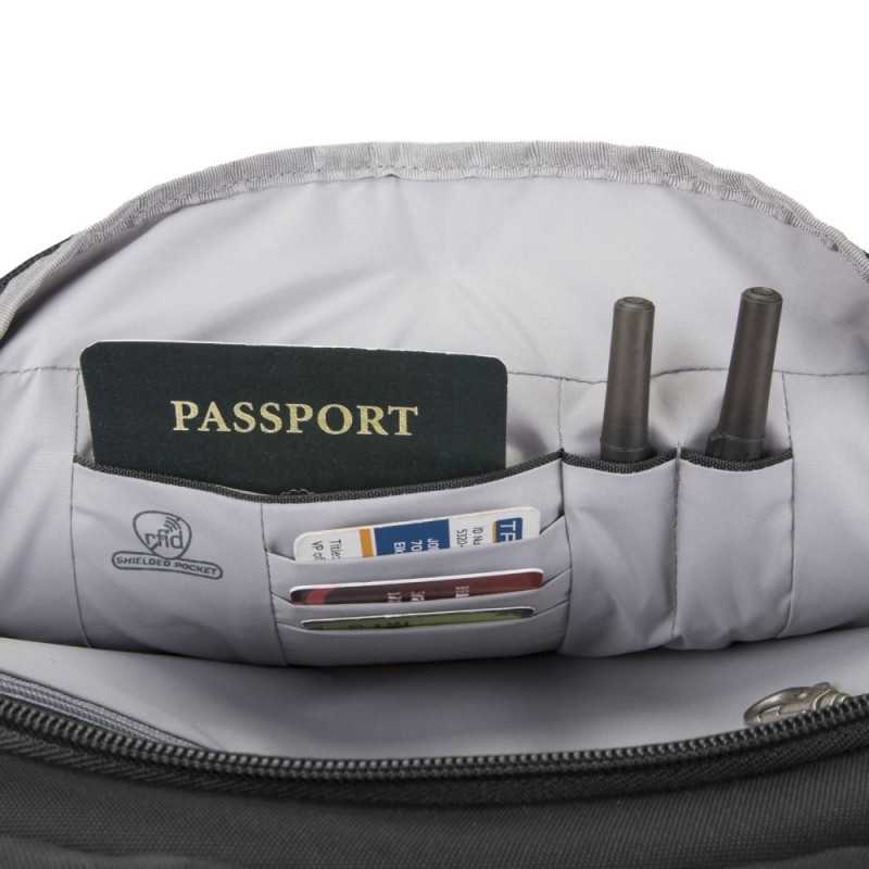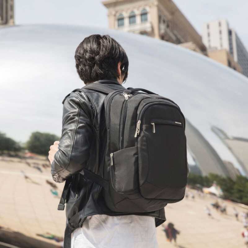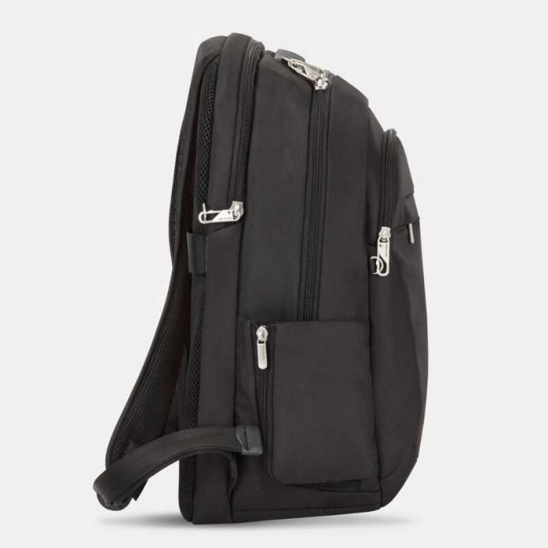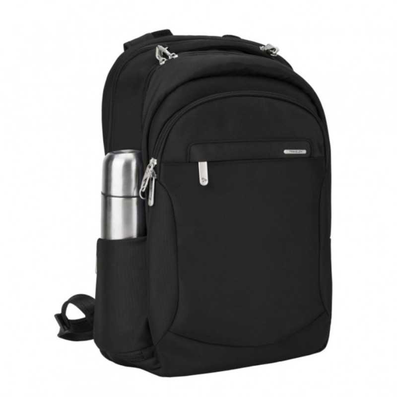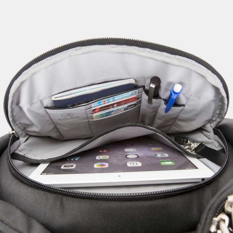 Το πρακτικό και όμορφο σακίδιο της Travelon είναι ιδανική επιλογή για την καθημερινότητά σας, το γραφείο και τα ταξίδια. Ζυγίζει 425 γραμμάρια και είναι κατασκευασμένο από ανθεκτικό 900D πολυεστέρα, που το κάνει αδιάβροχο και δεν λερώνει. Έχει χωρητικοτητα 25 λίτρων και διαθέτει εσωτερικές τσέπες για καλύτερη κατανομή των αντικειμένων σας. Επιπλέον, εσωτερικά υπάρχει θήκη για το λάπτοπ ή το tablet, και θήκες για τις κάρτες σας και το διαβατήριό σας με σύστημα RFID Block που εμποδίζει την υποκλοπή των προσωπικών σας δεδομένων. Τέλος, εσωτερικά υπάρχει και μπρελόκ για τα κλειδιά σας με φωτάκι LED. Εξωτερικά, υπάρχει θήκη για να τοποθετήσετε τα αντικείμενα στα οποία θέλετε να έχετε άμεση πρόσβαση, καθώς και υποδοχή για ένα μπουκάλι νερού.