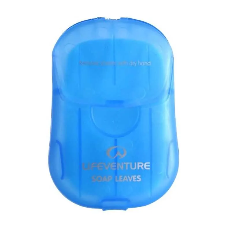 50 φύλλα σαπουνιού σε λεπτά φύλλα που είναι χρήσιμο να έχετε μαζί σας στο τσαντάκι, την τσέπη ή το σακίδιο σας. Η συσκευασία περιέχει 50 λεπτά φύλλα σαπουνιού, το κάθε ένα από τα οποία μόλις βραχεί δημιουργεί πλούσιο αφρό για να πλύνετε τα χέρια σας. Εξαιρετική ιδέα, ιδιαίτερα χρήσιμη για εκδρομές, για το αυτοκίνητο αλλά και για την πόλη σε εστιατόρια, καφετέριες, σινεμά ή άλλα καταστήματα που καμιά φορά το σαπούνι απουσιάζει. Με ελαφρύ διακριτικό άρωμα. Συμβατό με τους κανονισμούς αεροδρομίων, ιδανικό επίσης για να το προσθέσετε στα είδη κάμπινγκ σας.