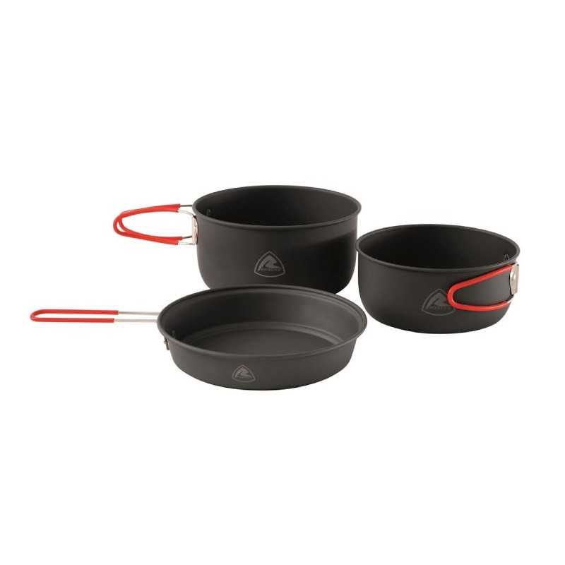 Εξαιρετικής ποιότητας σετ μαγειρέματος από ανοδιωμένο αλουμίνιο της Robens. Περιλαμβάνει 2 κατσαρολάκια και 1 τηγάνι, το οποίο μπορεί να χρησιμοποιηθεί ως καπάκι (ταιριάζει και στα 2 κατσαρολάκια). Όλα τα σκεύη αποθηκεύονται το ένα μέσα στο άλλο για εξοικονόμηση χώρου. Τα χερούλια είναι από ανοξείδωτο ατσάλι, προστατευμένα με σιλικόνη για να μην καίνε, και ειναι αναδιπλούμενα για μέγιστη εξοικονόμηση χώρου. Διατίθεται με πρακτικό σάκο μεταφοράς.