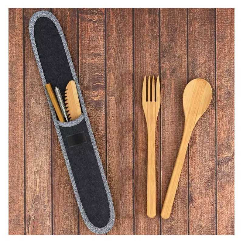 Ελαφρύ σετ μαχαιροπίρουνου από bamboo σε πρακτική θήκη μεταφοράς και αποθήκευσης. Ιδανικό για να το έχετε στη τσάντα σας ή το σακίδιο σας για τις εκδρομές σας, για το camping ή τη δουλειά σας. Το σετ μαχαιροπίρουνου από bamboo περιέχει μαχαίρι, πιρούνι και κουτάλι, καλαμάκι και καθαριστή για το καλαμάκι. Επιπλέον, το περιεχόμενο προστατεύεται από μια πρακτική θήκη με carabiner.