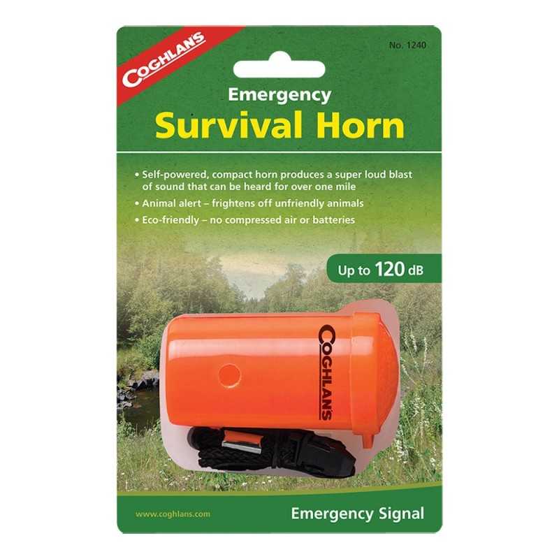 Η σφυρίχτρα επιβίωσης της Coghlans είναι πολύ δυνατή! Παράγει περίπου ήχο περίπου 120 dB και μπορεί να ακουστεί πολύ μακριά σε απόσταστη σχεδόν 1,6 χιλιόμετρα. Η σφυρίχτρα διαθέτει μία μεμβράνη που μπορεί εύκολα να αντικατασταθεί. Λειτουργεί χωρίς πεπιεσμένο αέρα ή μπαταρίες και μπορεί να τρομάξει διάφορα ζώα στο δάσος για να προστατευθείτε σε δύσκολες στιγμές. Κατασκευασμένη από ανθεκτικό πολυπροπυλένιο, σε φωτεινό πορτοκαλί χρώμα, παραδίδεται μαζί με κορδόνι για τον λαιμό. Ο ήχος είναι βαθύς και μοιάζει λίγο με μπουρού πλοίου. Eίναι υπερελαφριά με βάρος μόλις 40 gr για να μην σας επιβαρύνει στη μεταφορά μαζί με τα υπόλοιπα είδη επιβίωσης.