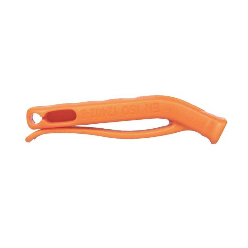 Μικρή και ελαφριά σφυρίχτρα που λειτουργεί σε υψηλή συχνότητα, χωρίς στραγάλι. Είναι αδιάβροχη, παράγει πολύ ισχυρό ήχο και το έντονο πορτοκαλί της χρώμα την κάνει να ξεχωρίζει ανάμεσα στον υπόλοιπο εξοπλισμό σας. Το clip διευκολύνει για να την τοποθετήσετε στη ζώνη ή την τσέπη σας και η υποδοχή για κορδόνι για να την κρεμάσετε. Σύμφωνη με τις προδιαγραφές του προτύπου EN ISO 12402-8. Απαραίτητο αξεσουάρ EDC (Every Day Carry).