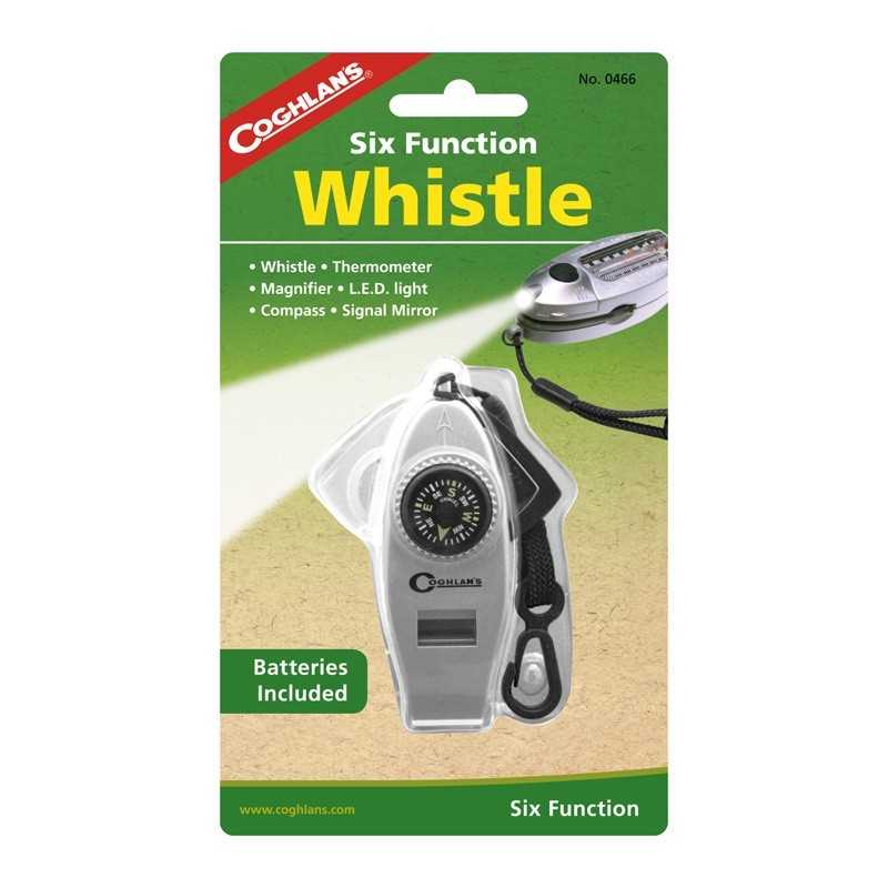 Μια πολυλειτουργική σφυρίχτρα με 6 εργαλεία/λειτουργίες: αναλογικό θερμόμετρο, φακό LED, πυξίδα, μεγεθυντικό φακό και καθρέπτη. Όλα τα εργαλεία είναι εξαιρετικά χρήσιμα σε μια εκδρομή ή ακόμα και για δώρο σε ένα μικρό πρόσκοπο. Η σφυρίχτρα διαθέτει μαύρο λουράκι με carabiner για να την έχετε πάντα μαζί σας. Περιλαμβάνονται 3 μπαταρίες πλακέ τύπου SR 1120.