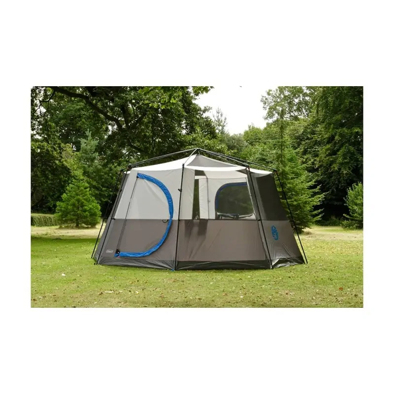 Η Octagon 8 Blue της Coleman είναι μια ευρύχωρη οκτάγωνη σκηνή που μπορεί να χωρέσει άνετα 8 άτομα. Μπορείτε αν θέλετε να ανοίξετε τα παράθυρα για επιπλέον εξαερισμό και περισσότερη δροσιά το καλοκαίρι. Διαθέτει ανθεκτικό πάτωμα από πολυαιθυλένιο , στιβαρός σκελετός από ατσάλι και fiberglass. Έχει επίσης μεγάλη πόρτα σχήματος D για εύκολη πρόσβαση στο εσωτερικό της (θα σας ενθουσιάσει ο μηχανισμός της πόρτας που ανοιγοκλείνει χωρίς φερμουάρ!), ενώ μαζεύεται σε σάκο μεταφοράς για να την έχετε πάντα μαζί σας στις εξορμήσεις σας στη φύση. Ιδανική για ζεστά κλίματα και για το ελληνικό καλοκαίρι.