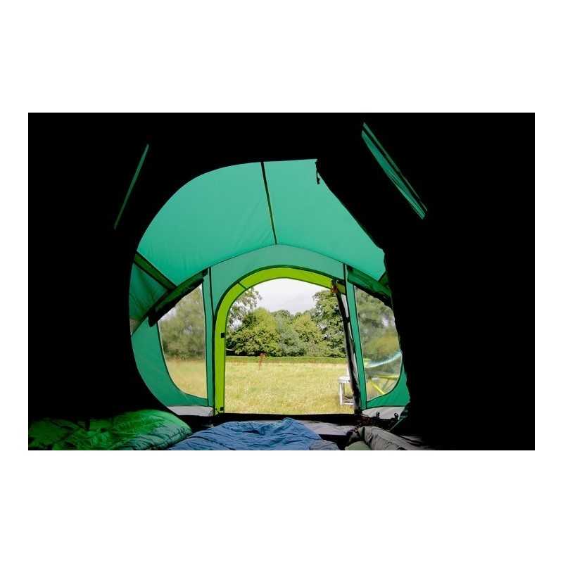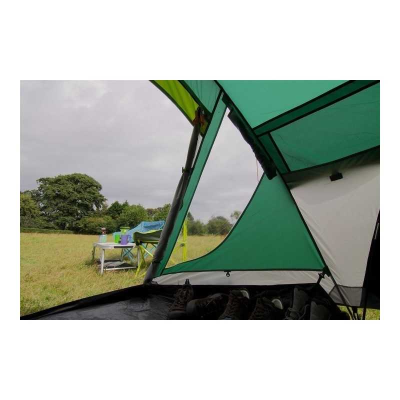 Το δωμάτιο έχει διαστάσεις 210 x 260 cm, δηλαδή ακριβώς 65 cm πλάτος για κάθε άτομο (αν υποθέσουμε ότι θα κοιμηθούν 4 άτομα). Το εξωτερικό και εσωτερικό κάλυμμα της σκηνής είναι κατασκευασμένο από πολυεστέρα 185Τ 68D και έχει υποστεί ειδική επεξεργασία με επιβραδυντικά φλόγας για περισσότερη ασφάλεια. Ο ευρύχωρος προθάλαμος είναι πολύ πρακτικός και χωράει άνετα τα παπούτσια σας αλλά και πολλά άλλα είδη από τον εξοπλισμό σας. Ο προθάλαμος διαθέτει ημιδιαφανή παράθυρα στα πλάγια που επιτρέπουν το φως να περάσει, τα οποία έχουν κουρτίνες αν θέλετε να τα κλείσετε τελείως.