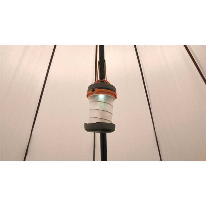 Εσωτερικά υπάρχουν 6 θήκες οργάνωσης περιμετρικά, ενώ ψηλά θα βρείτε 1 σημείο στο κεντρικό ορθοστάτη όπου μπορείτε να κρεμάσετε τη λάμπα σας ή τον εξοπλισμό σας. Εξωτερικά η σκηνή περιλαμβάνει και διακοσμητικά χρωματιστά σημαιάκια, τα οποία δίνουν μια όμορφη γιορτινή αίσθηση στο χώρο κατασκήνωσης.
