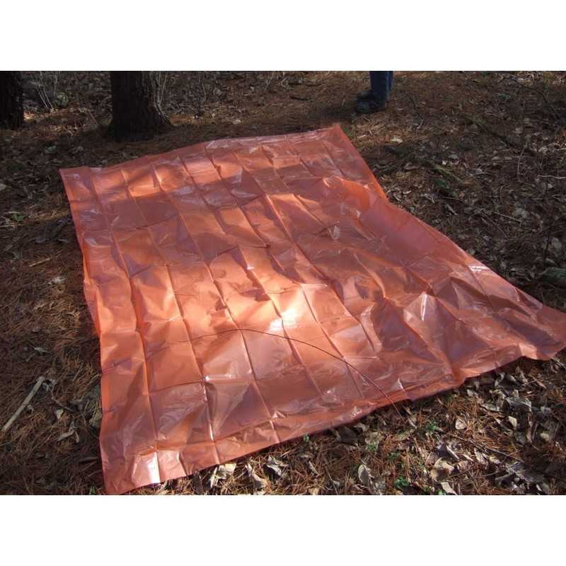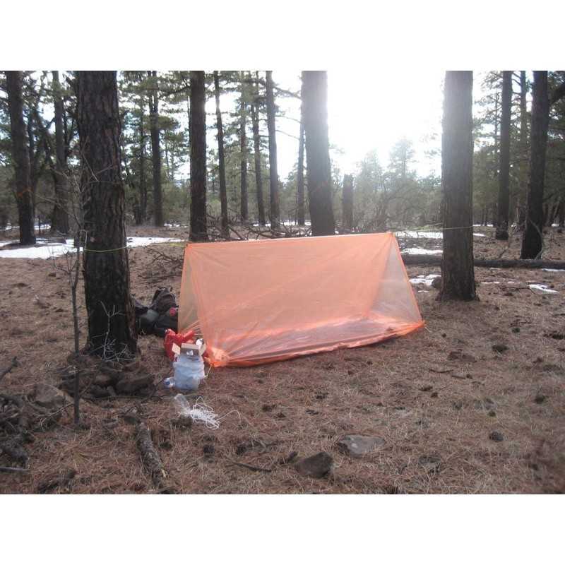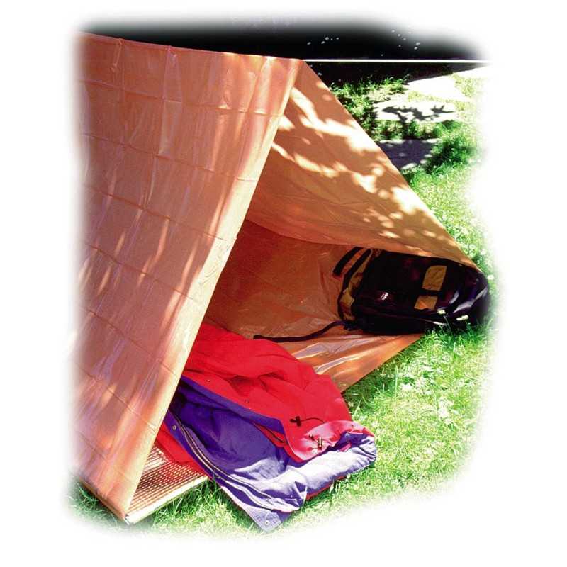 Πανάλαφρη σκηνή 2 ατόμων για περιπτώσεις έκτακτης ανάγκης ή σε περίπτωση που χαλάσει η βασική σας σκηνή και πρέπει να διανυκτερεύσετε στην ύπαιθρο. Η εγκατάσταση γίνεται μέσα σε 2 λεπτά, χωρίς πασαλάκια: απλά περάστε το σκοινί (περιλαμβάνεται) μήκους 230 cm μέσα από τη σκηνή και δέστε το μεταξύ δύο δέντρων. Η κατασκευή είναι από υψηλής αντοχής πολυαιθυλένιο πάχους 2,5 mm που μπορεί να χρησιμοποιηθεί και ως προστασία του κάτω μέρους της βασικής σκηνής σας (tarp). Το έντονο πορτοκαλί χρώμα αυξάνει την ορατότητα της σκηνής και βοηθάει την διάσωση σε περίπτωση ανάγκης. Στην συσκευασία περιλαμβάνεται το σκοινί και οδηγίες εγκατάστασης. Απαραίτητο αξεσουάρ επιβίωσης σε εκδρομές στο βουνό, όπου ο καιρός μπορεί να χαλάσει απρόβλεπτα.