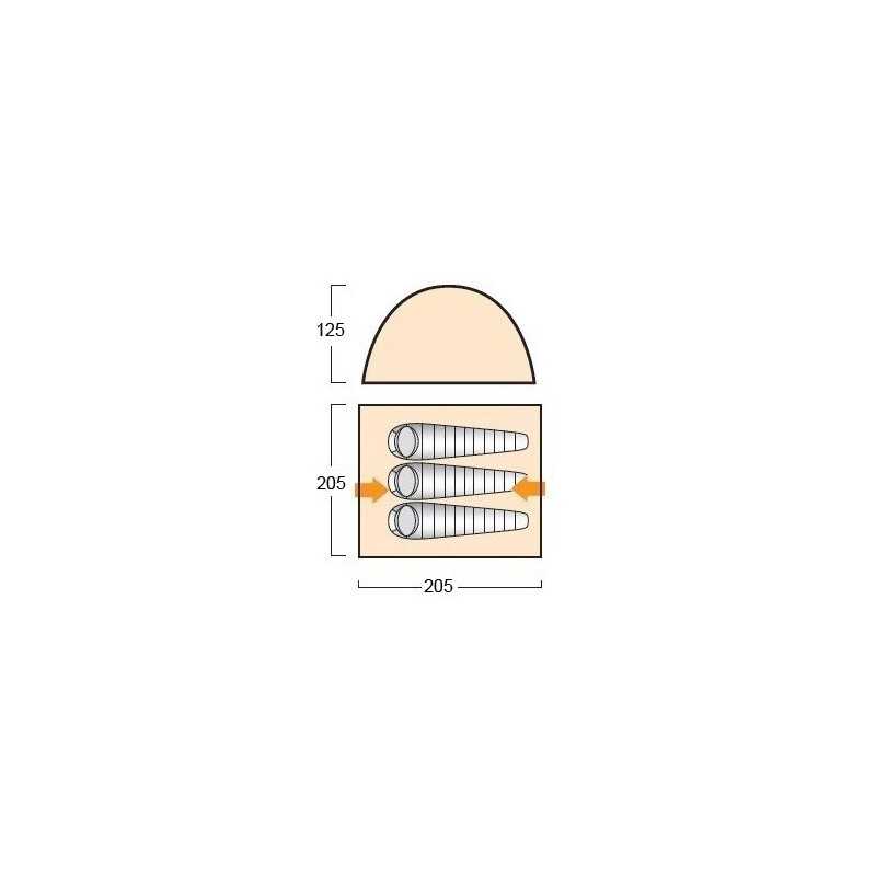 Το κάλυμμα είναι κατασκευασμένο από πολυεστέρα, ενώ το πάτωμα είναι από υψηλής αντοχής PE με άριστη αδιαβροχοποίηση 2000 mm. Οι μπανέλες είναι κατασκευασμένες από fiberglass. Συσκευασμένη καταλαμβάνει όγκο 13 x 62 cm.