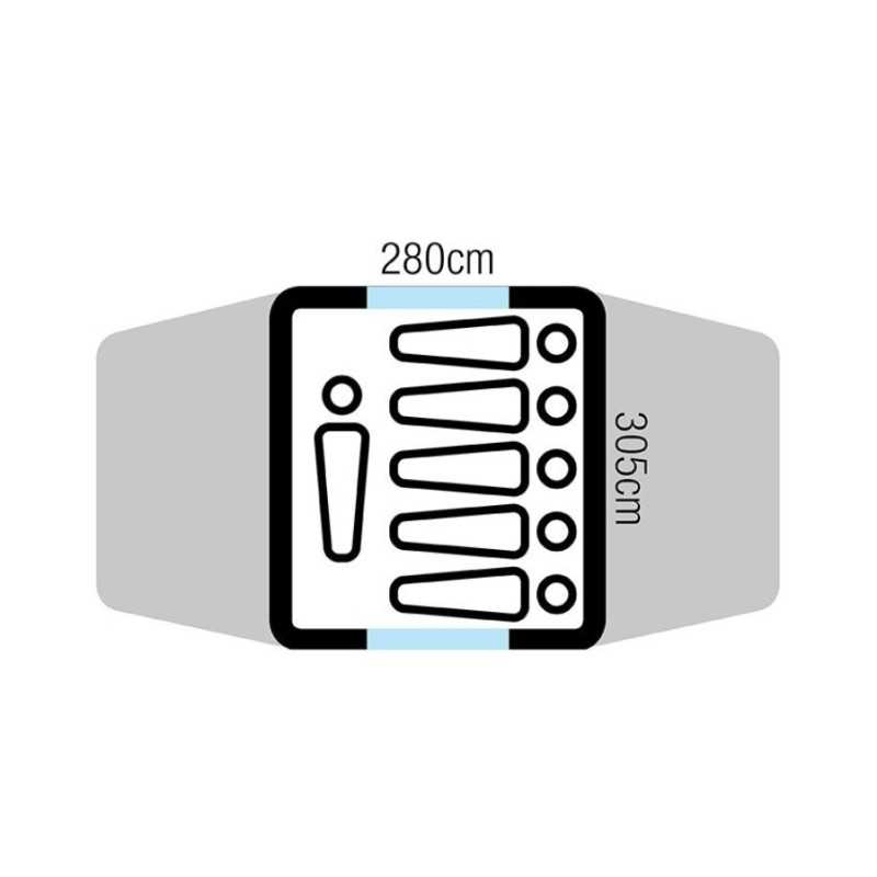 Εξαιρετική καλοκαιρινή σκηνή 6 ατόμων της αυστραλιανής Oztrail. Λόγω του ζεστού κλίματος της Αυστραλίας, ο σχεδιασμός είναι κατάλληλος για τα ζεστά ελληνικά καλοκαίρια. Η Tasman 6V είναι ικανή να χωρέσει 6 άτομα σχετικά άνετα ή 5 άτομα πολύ άνετα με αρκετό εξοπλισμό. Διαθέτει 2 πόρτες με σίτα που διευκολύνουν πολύ την συγκατοίκηση και την πρόσβαση μέσα στη σκηνή, ενώ ταυτόχρονα προσφέρουν άριστο εξαερισμό λόγω της δημιουργίας ρεύματος αέρα.
