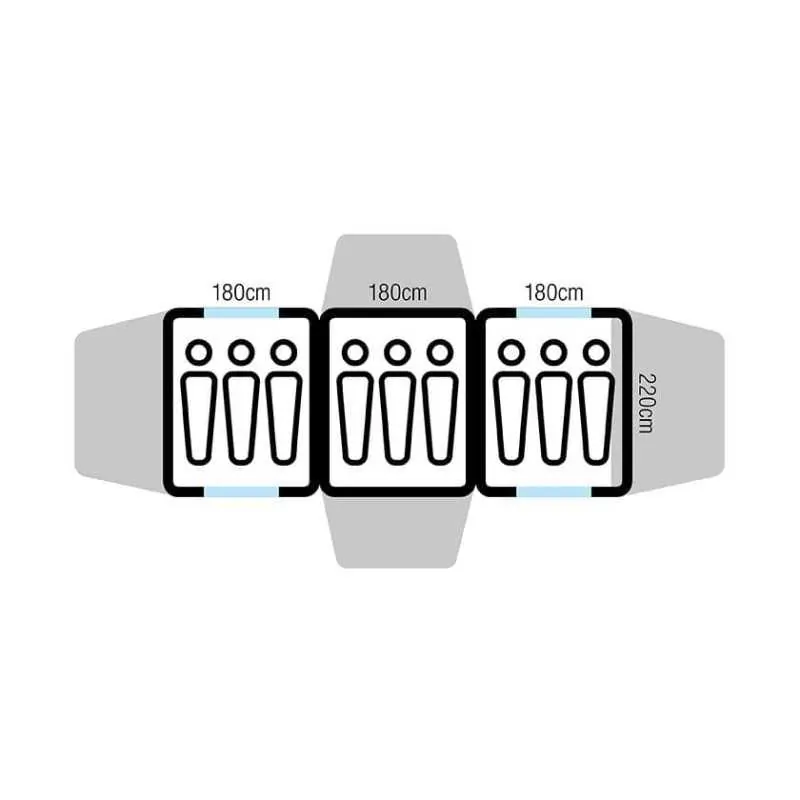 Εξαιρετική καλοκαιρινή σκηνή κάμπινγκ 9 ατόμων της αυστραλιανής Oztrail. Λόγω του ζεστού κλίματος της Αυστραλίας, ο σχεδιασμός είναι κατάλληλος για τα ζεστά ελληνικά καλοκαίρια. Η Bungalow 9 είναι ικανή να χωρέσει 9 άτομα σχετικά άνετα ή 6 άτομα πολύ άνετα με αρκετό εξοπλισμό. Διαθέτει 4 μεγάλες εισόδους με σίτα που διευκολύνει πολύ την συγκατοίκηση και την πρόσβαση μέσα στη σκηνή, ενώ ταυτόχρονα προσφέρουν άριστο εξαερισμό λόγω της δημιουργίας ρεύματος αέρα.