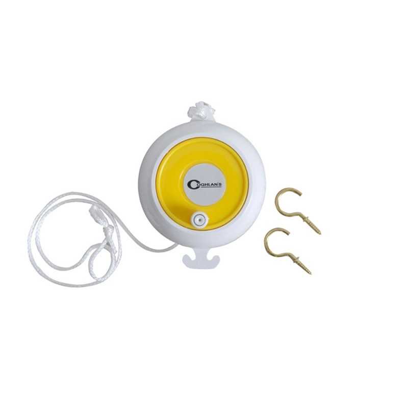 Δυνατό nylon σκοινί για άπλωμα ρούχων που τυλίγεται και μαζεύεται στη θήκη του μετά τη χρήση. Πρακτικό και εύκολο στο κουβάλημα, είναι ιδανικό για κατασκηνωτές, πεζοπόρους και εκδρομείς που σκοπεύουν να περάσουν μερικές μέρες στη φύση. Το μήκος του σκοινιού είναι 6,4 m και η διάμετρος 3 mm. Στη συσκευασία περιλαμβάνονται 2 γάντζοι για βίδωμα σε τοίχο ή ξύλο.