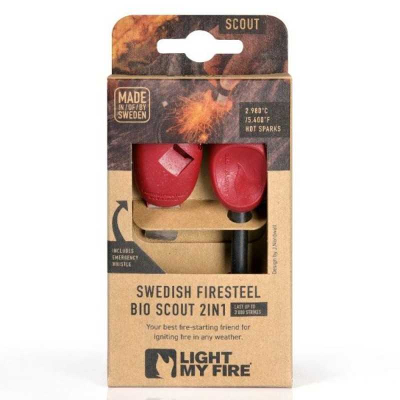 Ο θρυλικός σπινθηριστής Swedish Firesteel® είναι ο αυθεντικός σπινθηριστής μαγνησίου, στην πιο μικρή του εκδοχή. Ο Swedish Firesteel Bio Scout αποτελείται από έναν πανάλαφρο εξελιγμένο σπινθηριστή που κάνει ακόμα ευκολότερο το άναμμα της φωτιάς, σε οποιοδήποτε υψόμετρο κάτω από οποιεσδήποτε καιρικές συνθήκες. Σύμφωνα με τους κανονισμούς μεταφοράς, δεν θεωρείται επικίνδυνο προϊόν για μεταφορά στο αεροπλάνο. Έχει νέο design, φιλικό προς το περιβάλλον και ενσωματωμένη σφυρίχτρα έκτακτης ανάγκης. Περιλαμβάνει εύχρηστη συσκευασία κατασκευασμένη από ανακυκλώσιμα μπουκάλια για εύκολη αποθήκευση.