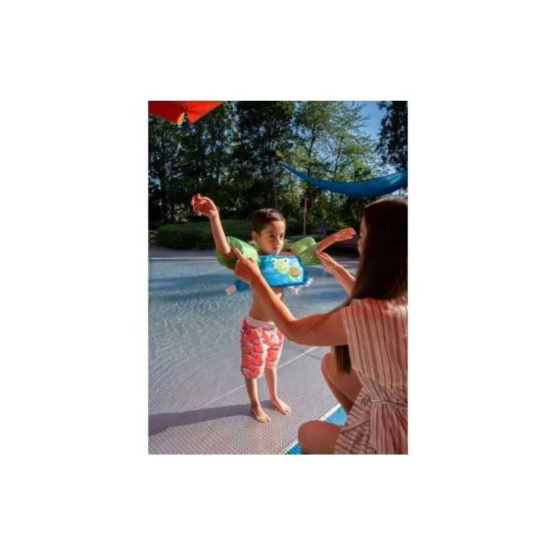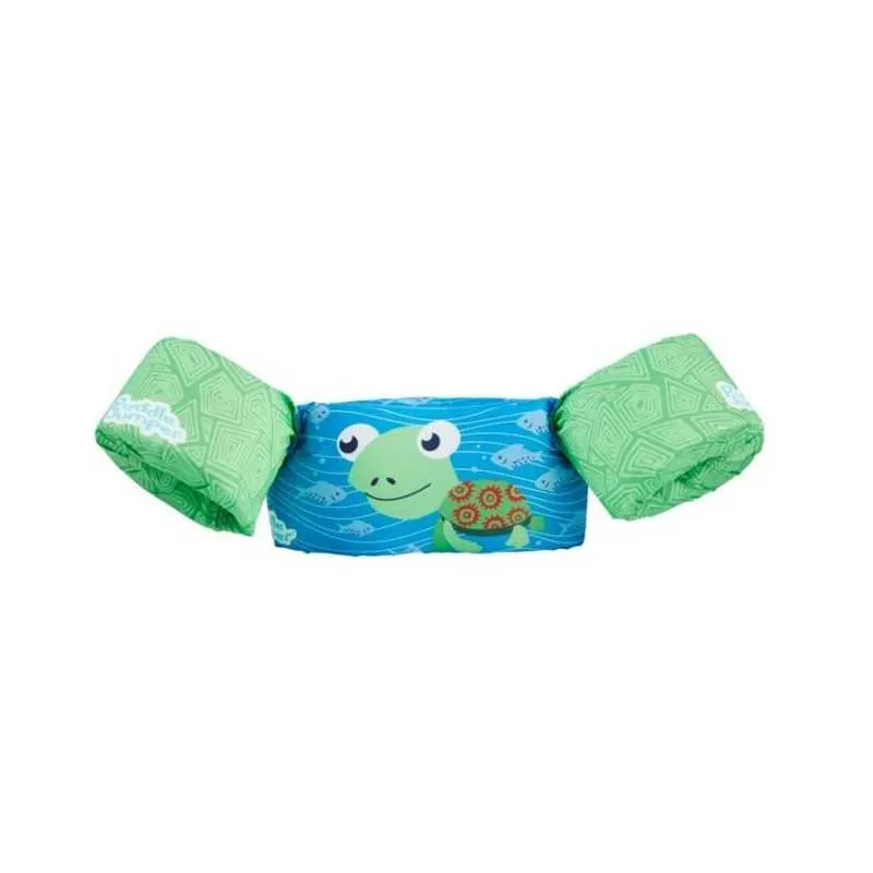 Ένα πρωτοποριακό σωσίβιο με μπρατσάκια, ιδανικό για παιδιά μεταξύ 2-6 ετών ή 15-30 κιλών (σύσταση κατασκευαστών είναι 25 κιλά) . Το σωσίβιο δένει στον κορμό και βοηθά ώστε το παιδί να έχει πάντα σωστή στάση στο κολύμπι, χωρίς να υπάρχει ο φόβος ότι μπορέι να πνιγεί, ενώ τα μπρατσάκια δίνουν μια επιπλέον ασφάλεια στο μπάνιο. Το Puddle Jumper Deluxe δίνει ελευθερία κινήσεων, ώστε τα παιδιά να απολαμβάνουν το μπάνιο τους στη θάλασσα ή την πισίνα. Το σωσίβιο με μπρατσάκια της Sevylor είναι κατασκευασμένο από Πολυεστέρας 150D και αφρώδες υλικό PE, σύμφωνα με το πρότυπο EN 13138-1. Σε υπέροχο σχέδιο με χελώνα.