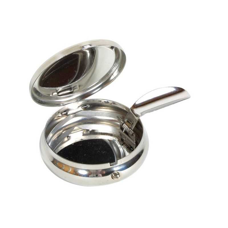 Μικρό στρογγυλό τασάκι τσέπης για να μην πετάτε τα τσιγάρα σας στο βουνό ή την παραλία. Κρατήστε το τσιγάρο σας στο τασάκι και πετάξτε το μετά στα σκουπίδια. Το τασάκι έχει μικρή αναδιπλούμενη υποδοχή για να στηρίξετε το τσιγάρο σας καθώς πίνετε τον καφέ σας. Κρατήστε το περιβάλλον καθαρό και αφήστε το χώρο καθαρό για τους επόμενους.