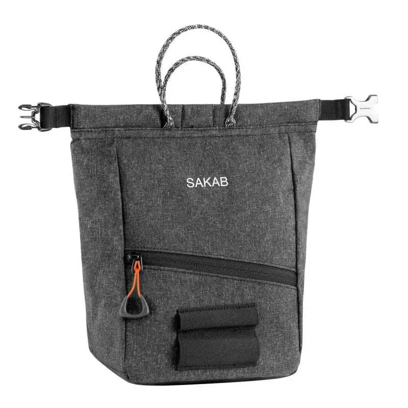 Το SAKAB είναι μια τσάντα κιμωλίας bouldering που τοποθετείται στο έδαφος. Η ημιάκαμπτη κατασκευή του παρέχει εξαιρετική σταθερότητα και το άνοιγμά της είναι αρκετά μεγάλο ώστε και τα δύο χέρια να έχουν πρόσβαση στην μαγνησία. Το μαγνητικό κλείσιμο με ρολό κρατά την μαγνησία με ασφάλεια μέσα στη τσάντα. Διαθέτει δύο χερούλια, για να διευκολύνει τη μεταφορά και να το κρεμάει στο ύψος του χεριού. Είναι πρακτική, με βάση για βούρτσα και δύο τσέπες με φερμουάρ για το διαχωρισμό αντικειμένων.
