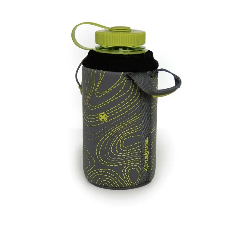 Θήκη νεοπρενίου για τα παγούρια της Nalgene 1 lt ή άλλα παγούρια παρόμοιου μεγέθους. Μπορείτε να χρησιμοποιήσετε το παγούρι χωρίς να αφαιρέσετε τη θήκη. Η θήκη σφίγγει πάνω στο παγούρι με μικρό κορδόνι ενώ έχει και θηλιά για να το κρεμάσετε στο σακίδιό σας. Η θήκη της Nalgene είναι κατασκευασμένη από ανθεκτικό νεοπρένιο που προστατεύει το παγούρι από χτυπήματα και γρατζουνιές ενώ ταυτόχρονα προσφέρει λίγη μόνωση στο περιεχόμενο. Έτσι το παγούρι μετατρέπεται σε θερμός και η θερμοκρασία του ροφήματος παραμένει σταθερή για λίγη περισσότερη ώρα.